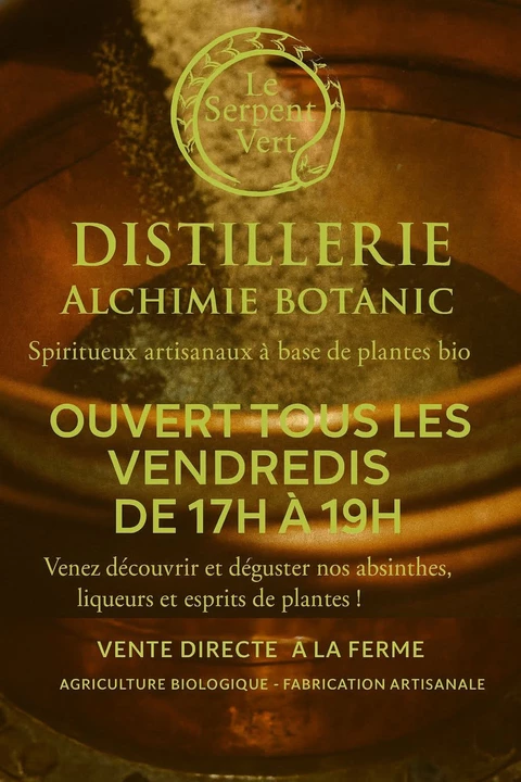 > Plongez dans l'univers d'Alchimie Botanic Distillerie Le Serpent Vert, où chaque goutte de nos spiritueux raconte une histoire de passion et de tradition. Laissez-vous séduire par nos boissons botaniques, élaborées avec amour au cœur du Jura.